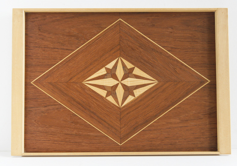 Dienblad van Esdoorn met ingelegd geometrisch patroon Teak, Esdoorn, diverse houtsoorten