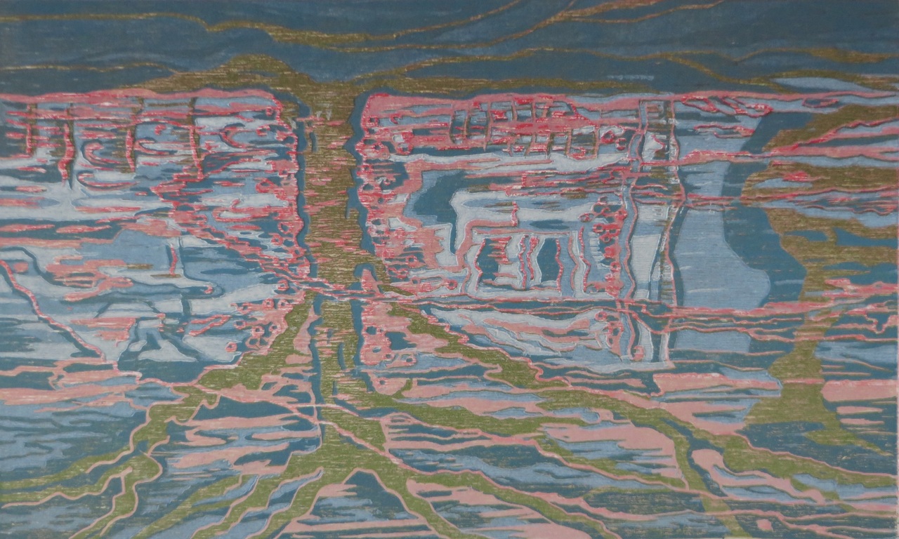 Groningen, weerspiegeling houtdruk