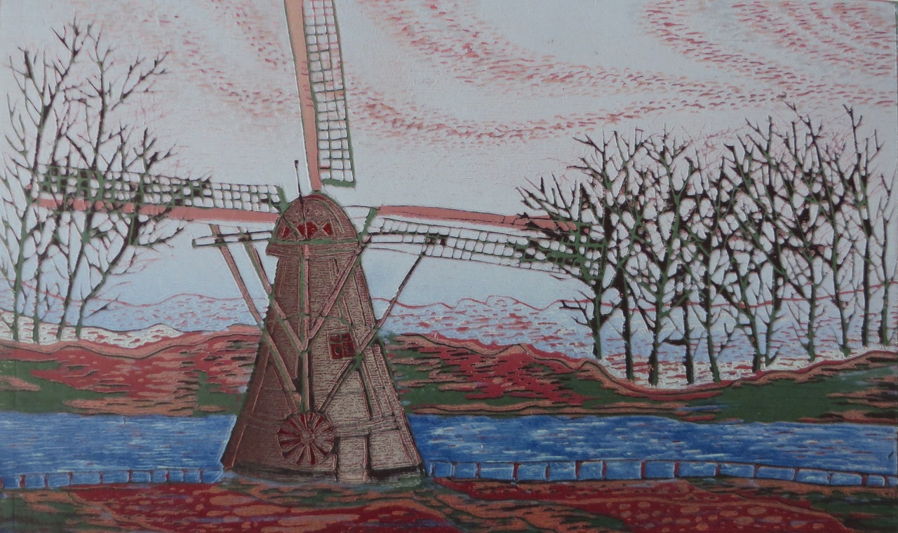 Groningen molen houtdruk