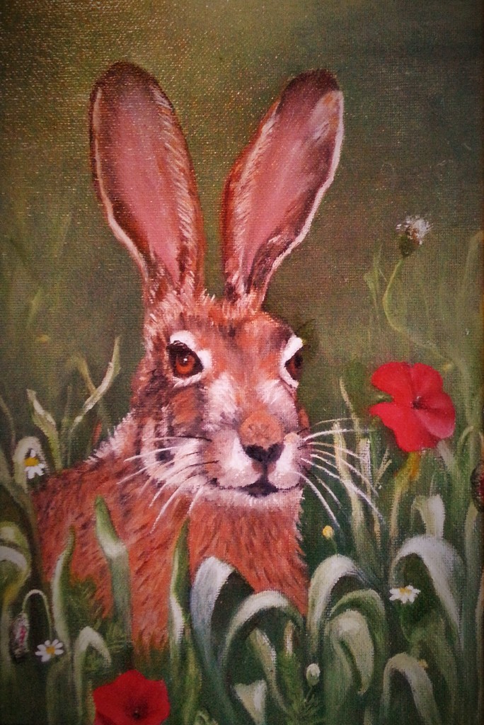 Haas Grasveld Bloemen Groen Olieverf Klaproos Grassprieten Gras
