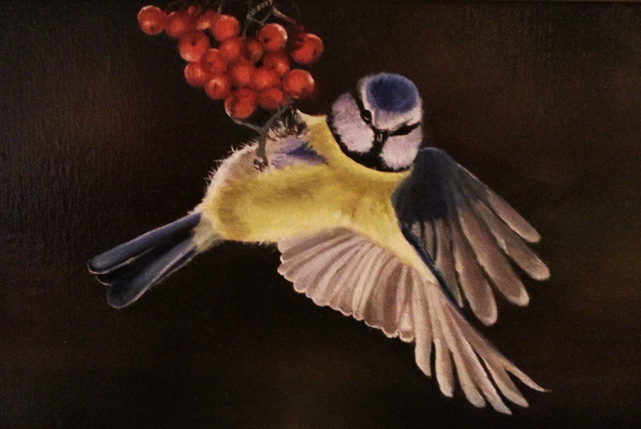 Koolmees Vleugels Kleuren Besjes Geel Blauw Olieverf Vogel