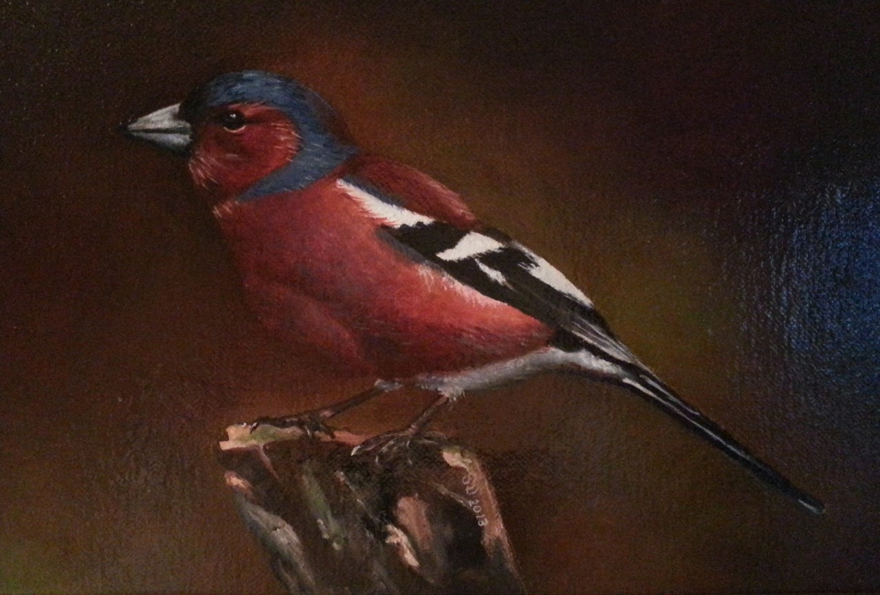 Rood Blauw Vogel Olieverf Boomstam Vink