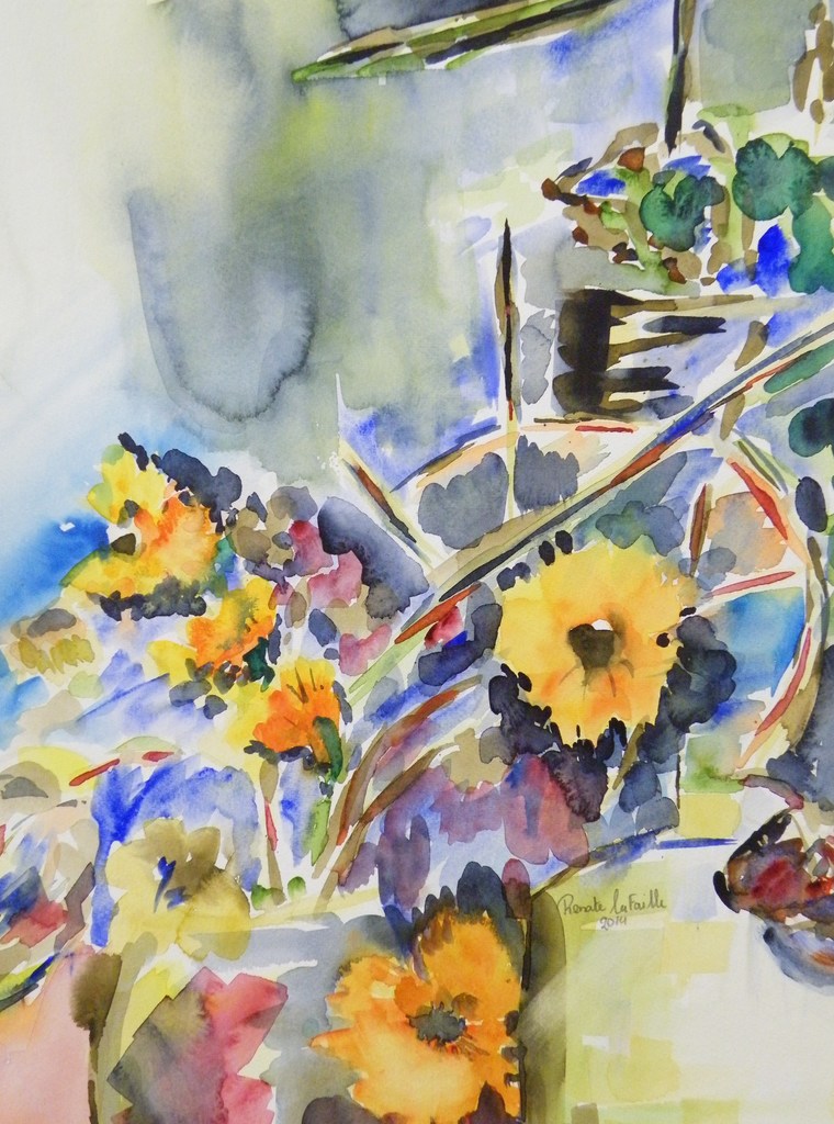 Hallo mijn naam is Renate la Faille geboren te Enschede in 1968. In 1995 ben ik verhuisd naar Almelo en via via ben ik in aanraking gekomen met het medium aquarel. Ik hou van de heldere kleuren en hoe de aquarelverf wanneer deze met veel water vermengd wordt in elkaar overvloeit. Inspiratie haal ik uit de natuur. Ik ga er dan ook op uit om van de natuur in al zijn schoonheid te genieten, daarvan maak ik foto's en die zet om in een aquarel. Daarnaast werk ik ook grafische technieken die soms combineer met aquarelverf. Er kunnen dan ook zeer verrassende schilderijen uit voortkomen als je beide technieken in 1 schilderij verwerkt. Sinds januari 2013 volg ik lessen op de Almelo Academie van Paul Tieke. Sindsdien maak ik een grote ontwikkeling door.