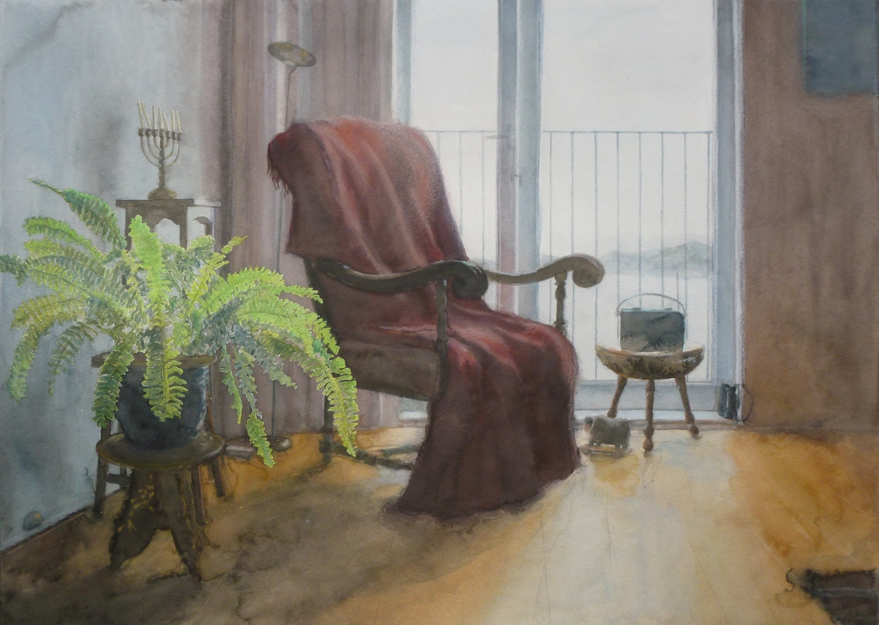Licht Stoel Aquarel Light Plant Raam Window Watercolour Chair