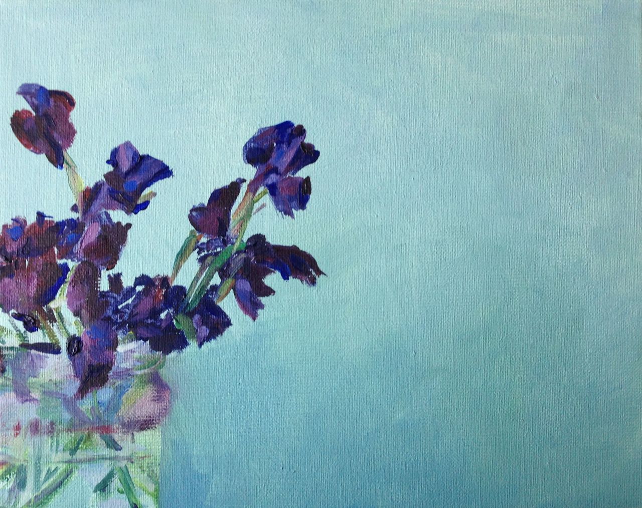 Spannende compositie van paarse lathyrus in een glas