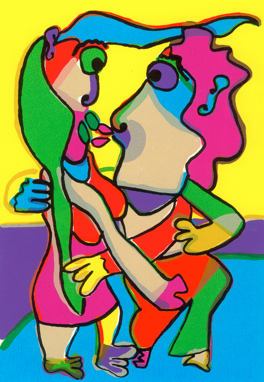 Vrouw Man Liefde In Love Kussen Geluk Kus Gelukkig Zeefdruk Kiss