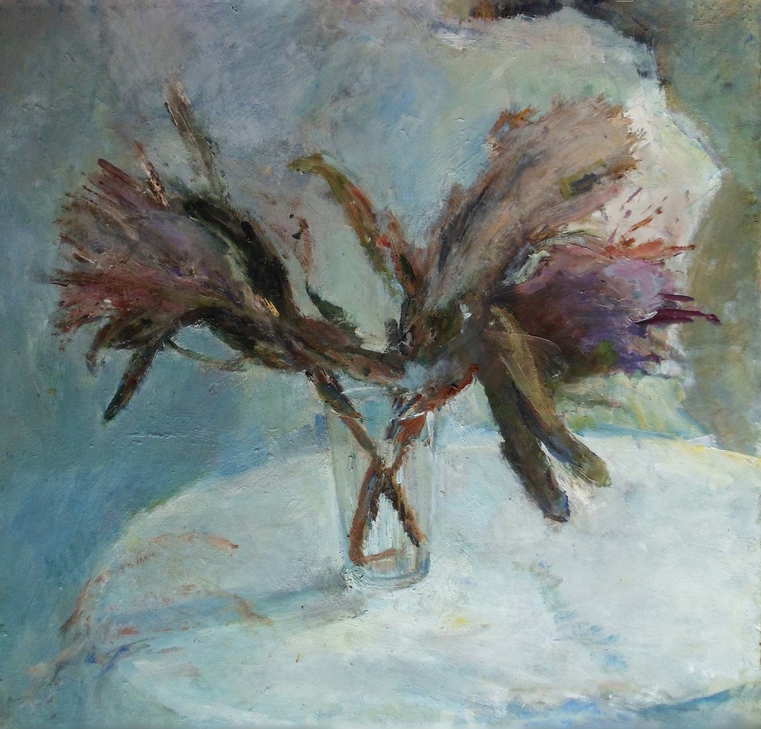 Suikerbossie. In het najaar te koop en dan laten drogen, blijft heel lang mooi. Deze schilderde ik in een glas waar ze eigenlijk te zwaar voor waren, maar wel mooi in stonden. Telkens viel dat glas om en dan moest ik het allemaal weer veranderen.