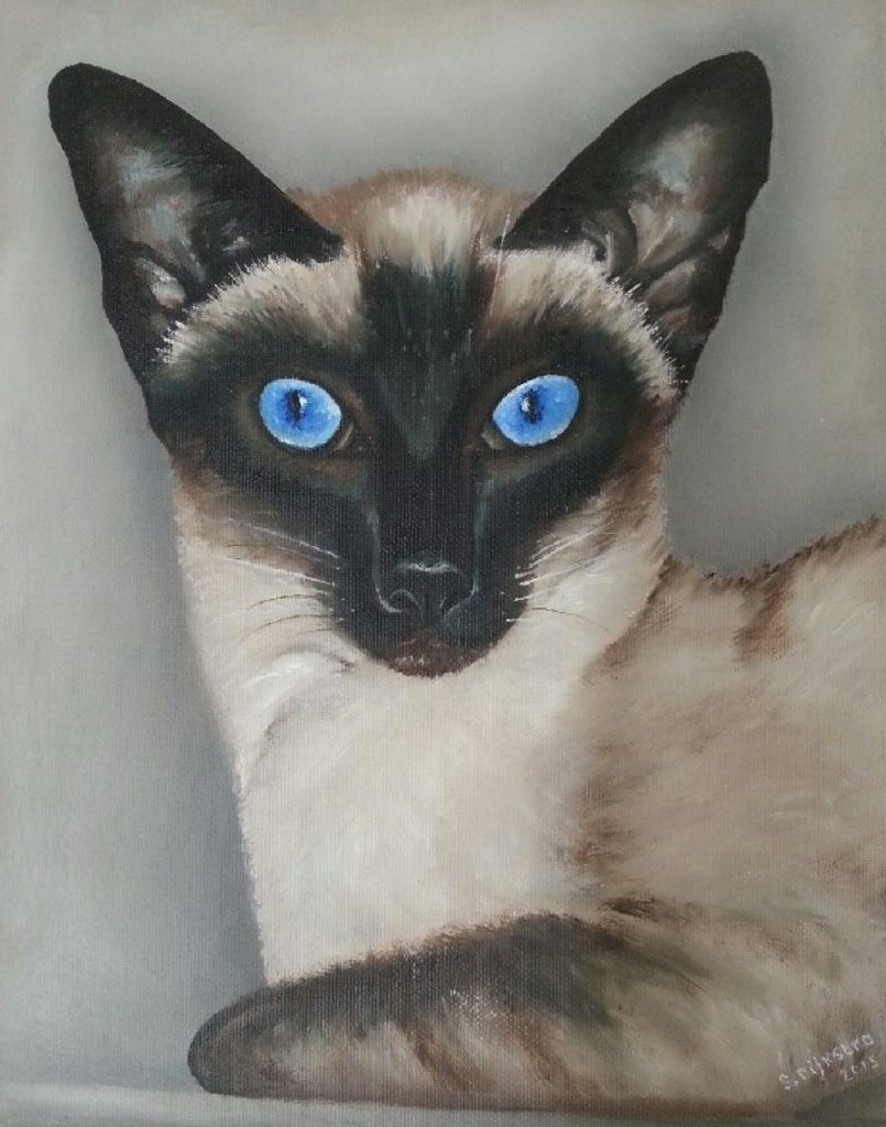 Siamees Seal-point Kat Poes Blauwe Ogen Olieverf Figuratief Realistisch Huisdier