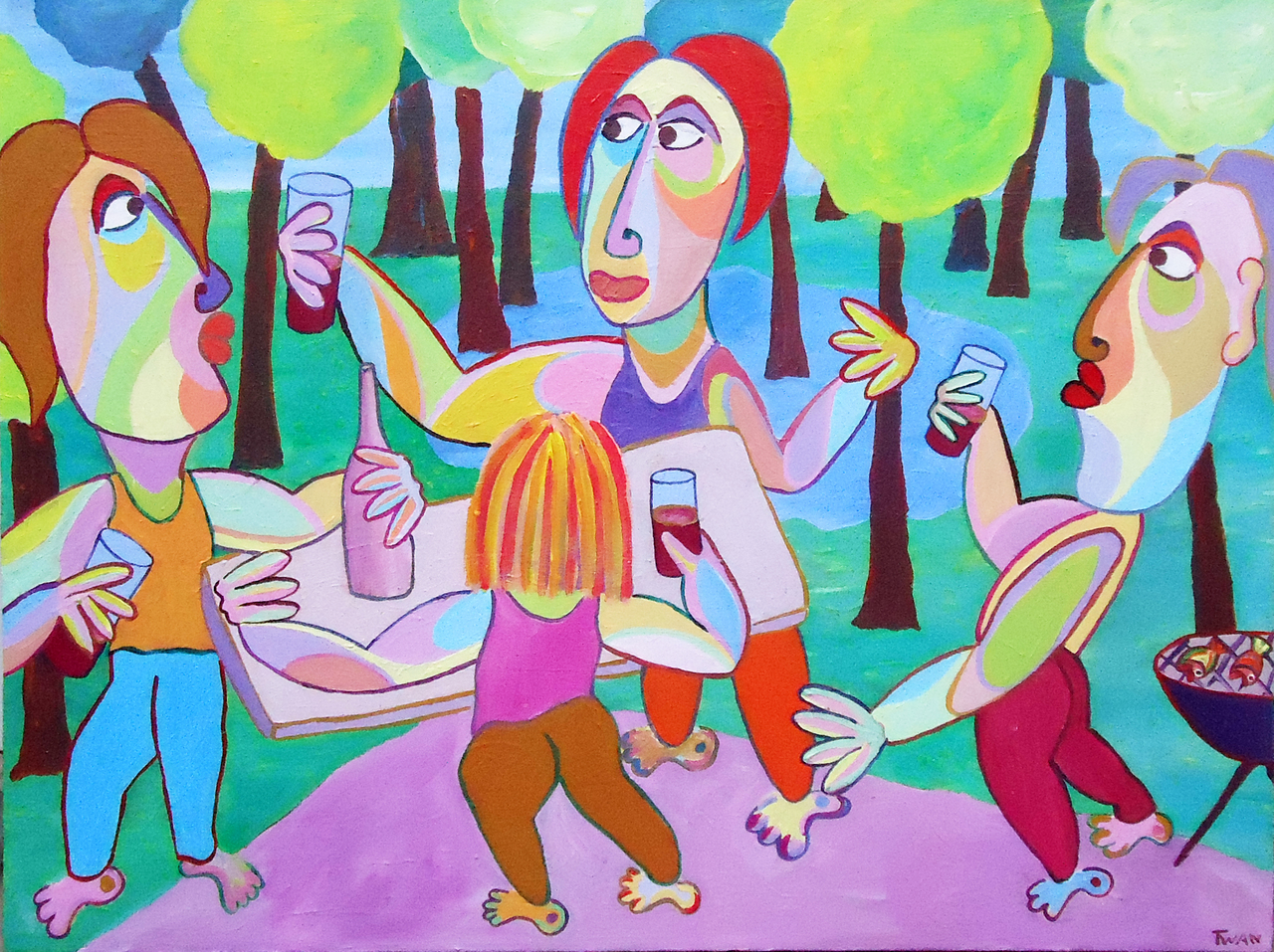Schilderij Kubisme Kunst Vrienden Mannen Praten Gesprek Maten Kleur Bos Male Bonding Cobra Painting Cubism Art Friends Men Talk Mates Color Forest