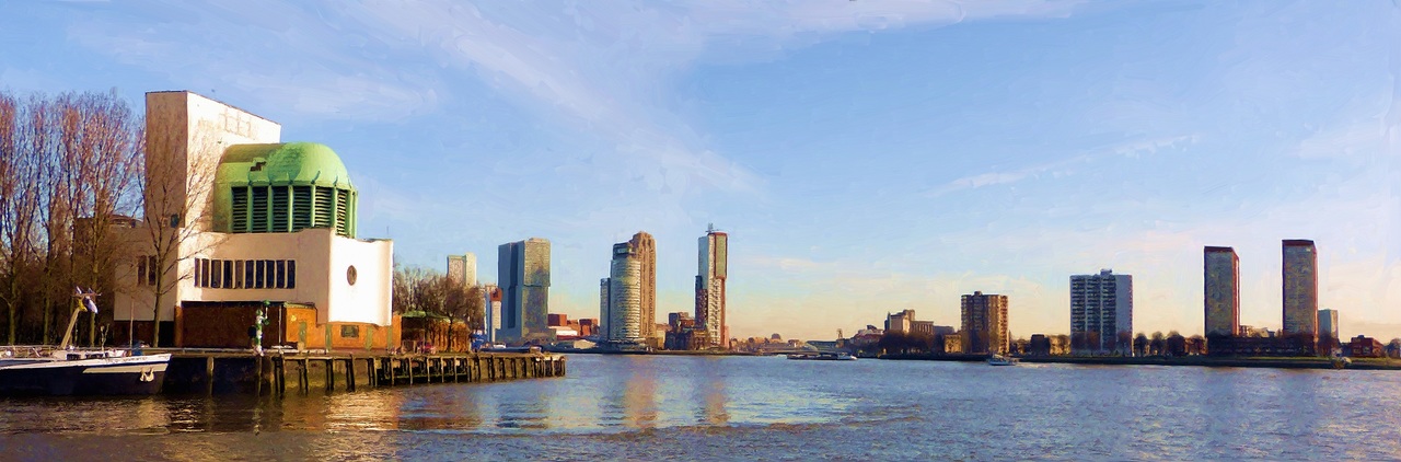 Aan de andere kant van de Maas staat z'n broertje. Uitzicht op de Erasmusbrug