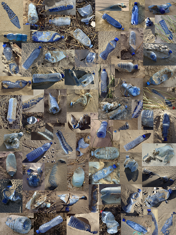 De eerste uit de serie Zwervers: de relatieve schoonheid van gevonden blauwe flessen. Professionele print op Dibond achter acrylglas.