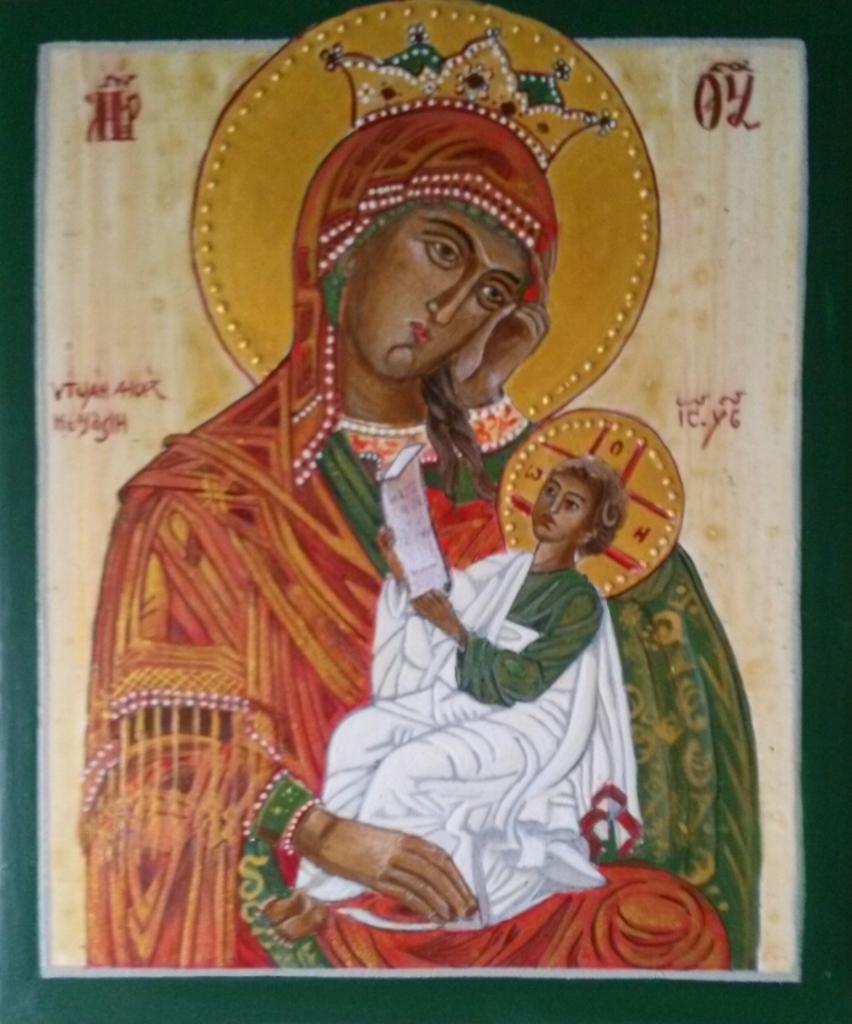 Moeder Kind Gods Tempera Ikoon Goud Rood Groen