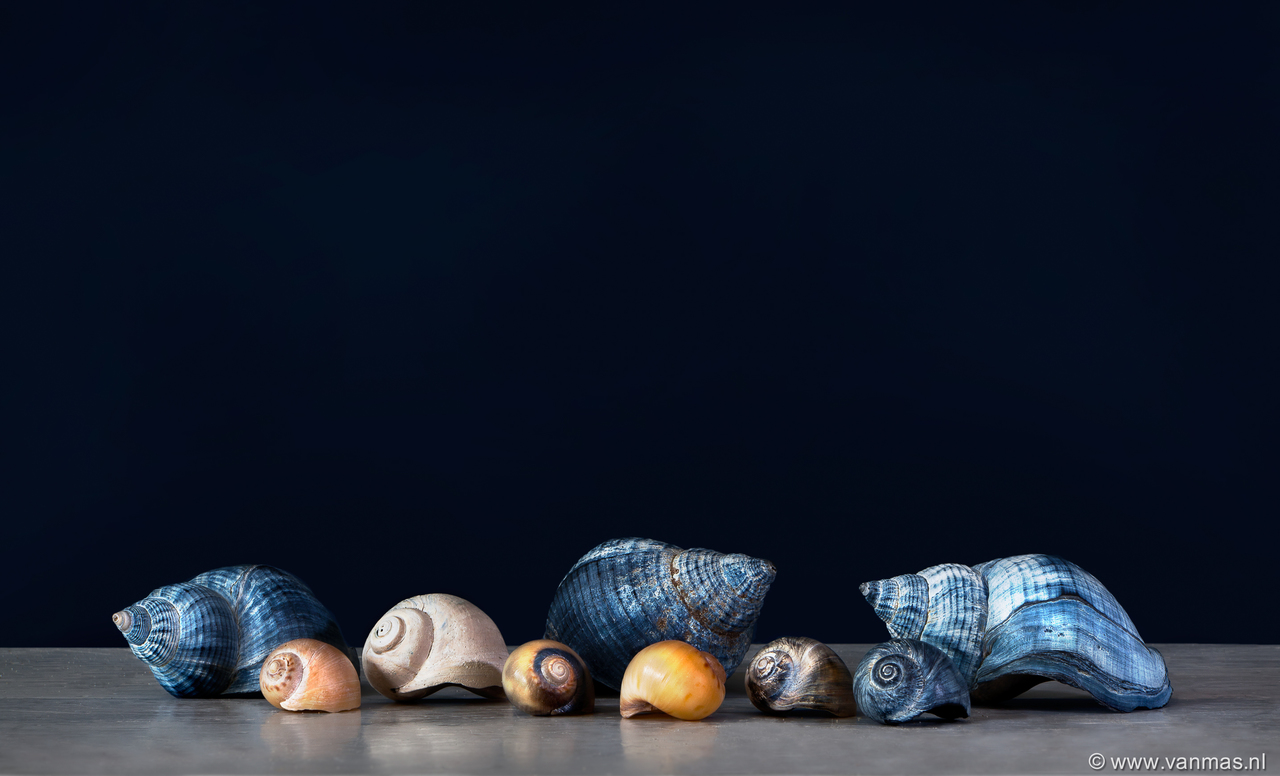 Stilleven met blauwe schelp