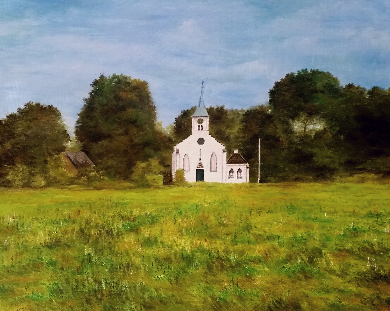 Landschap Realistisch Olieverf Oilpaint With Met Landscape Kerk Church Realistic