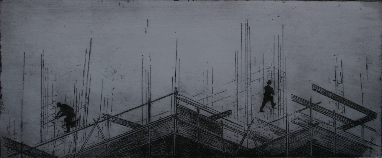 Twee bouwvakkers op een steiger