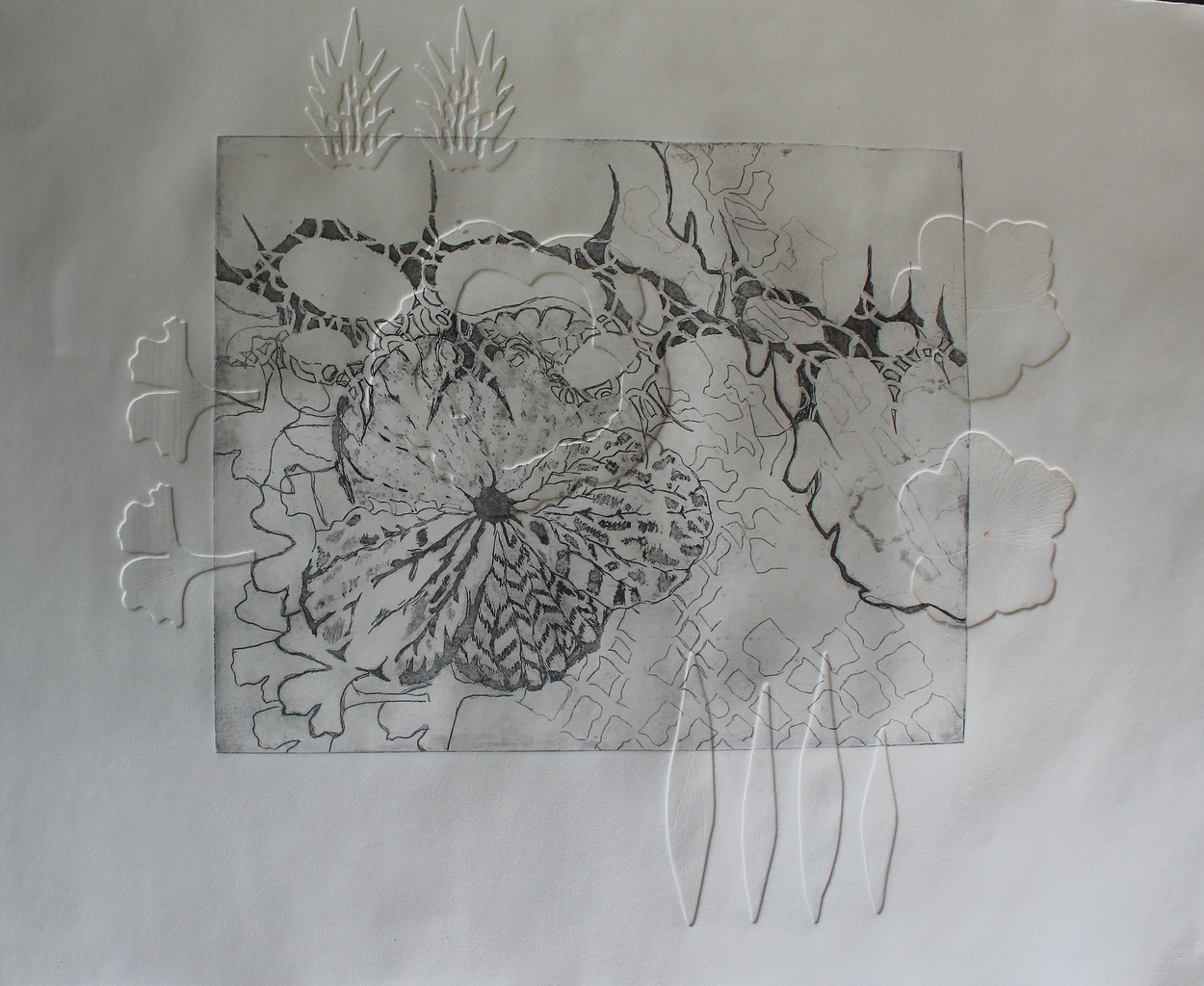 Hortensia, met blinddruk afbeeldingen (= afbeelding zonder inkt) erin. Afmeting van de afbeelding: 40/50 € 100 exclusief pass partout en lijst.