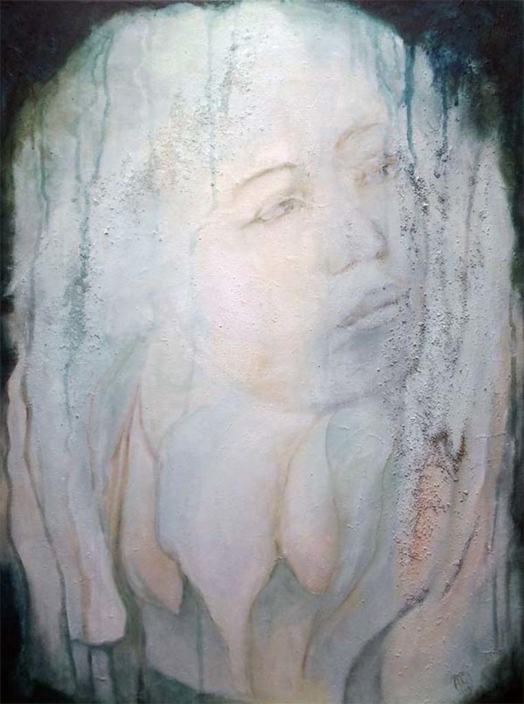 In Blue 2 zijn verschillende materialen gebruikt, wat resulteerde in een zacht geschilderd portret.