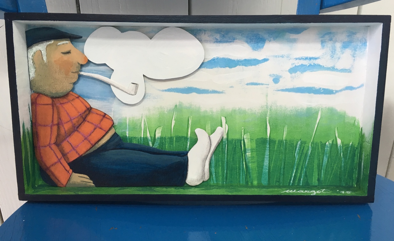 Papa fume une pipe.