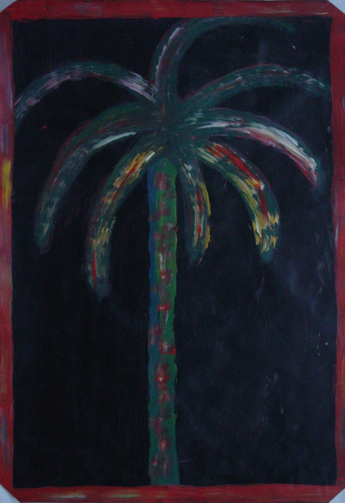 Wat aanvankelijk een bloem was, werd uiteindelijk de boom van Leven; Geschilderd op de eerste dag schilderen van het schoolschilderproject met ons team van Bulamu Children Village in Bombo in Oeganda in december 2014.