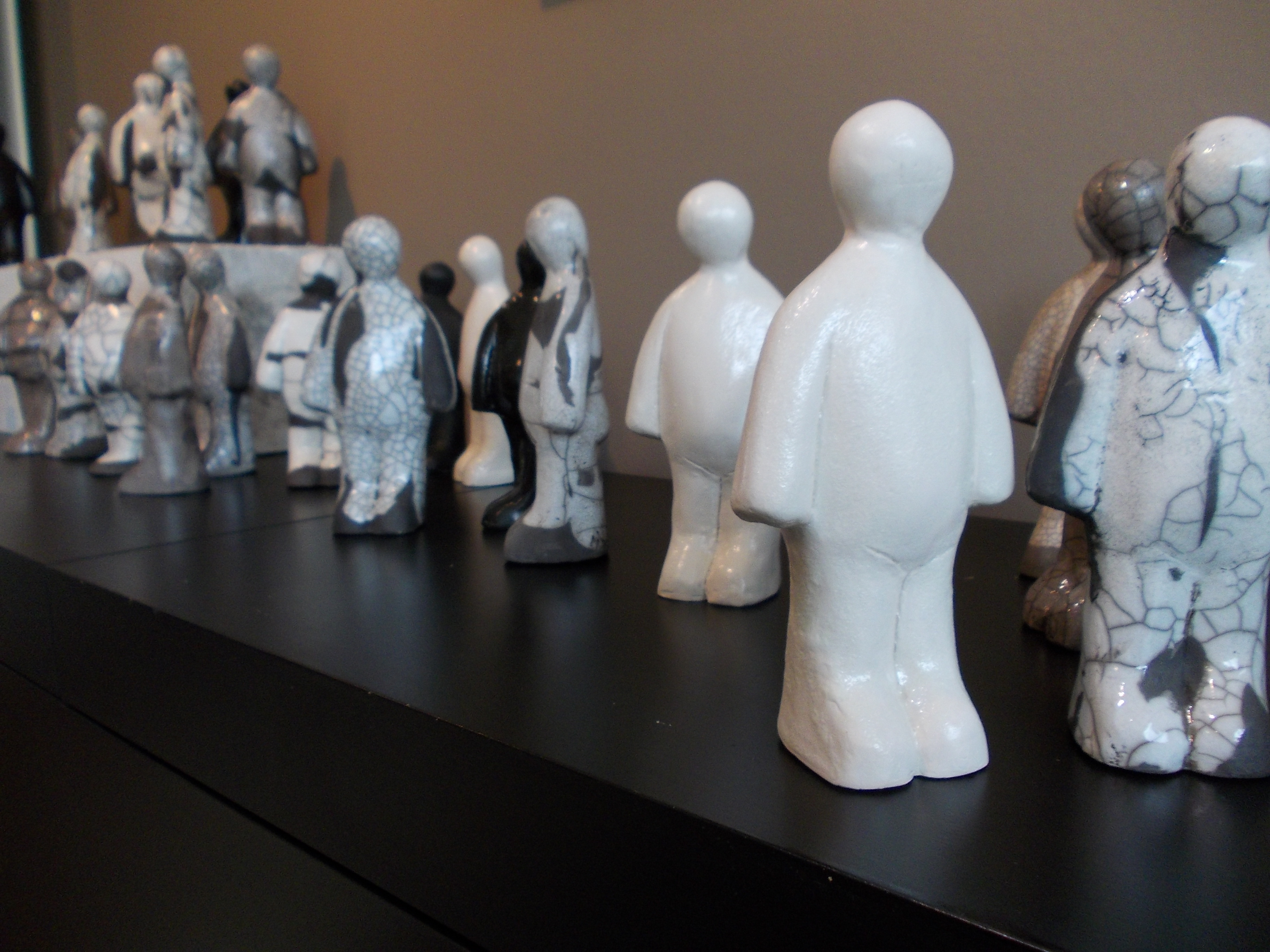 groep van 60 beeldjes in gietklei en afgewerkt in verschillende technieken