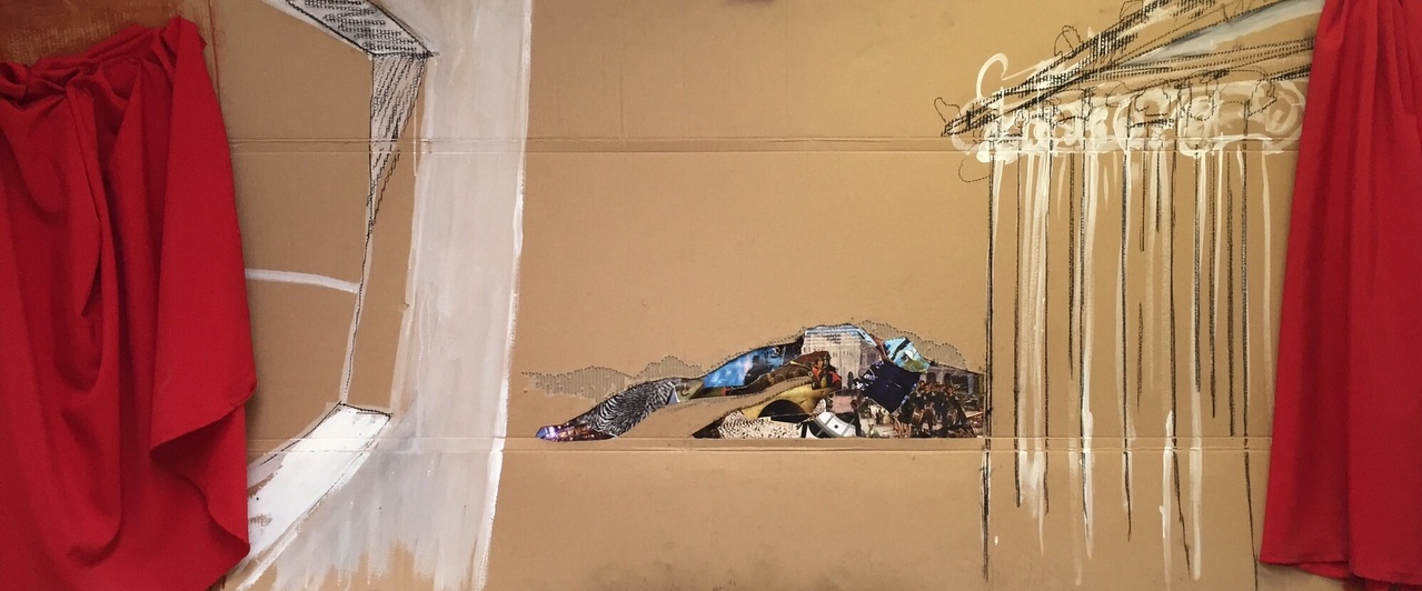 Landschap Acryl Karton Collage Architectuur Raam Tempel Eiland