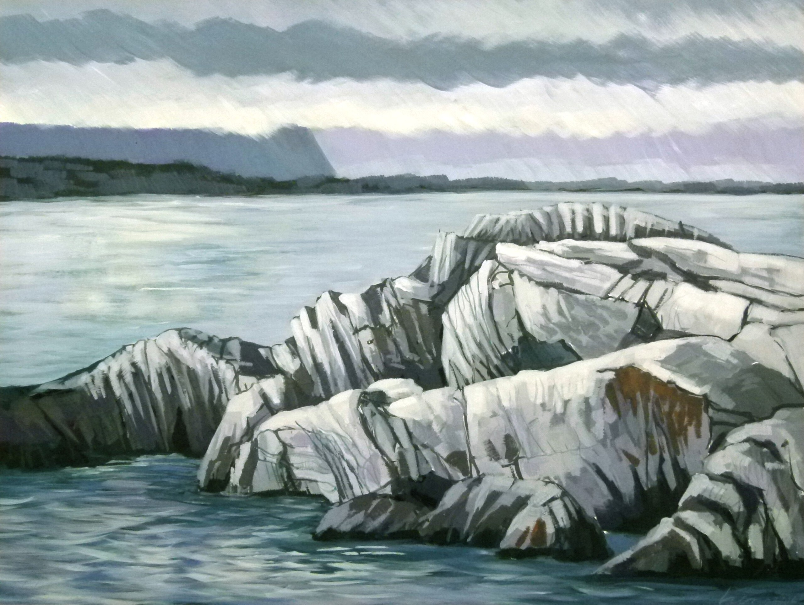 Lofoten, zeegezicht, somber weer, Noorwegen,