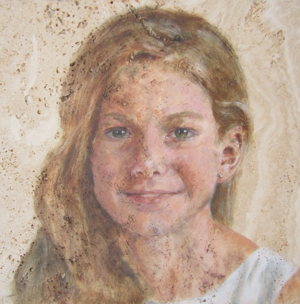 Kinderportret Jeantienne Olieverf Steen Travertin Meisje Tiener Portret Portrait Girl Oil Stone