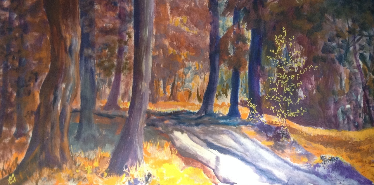 Geel Acryl Paars Natuur Bomen