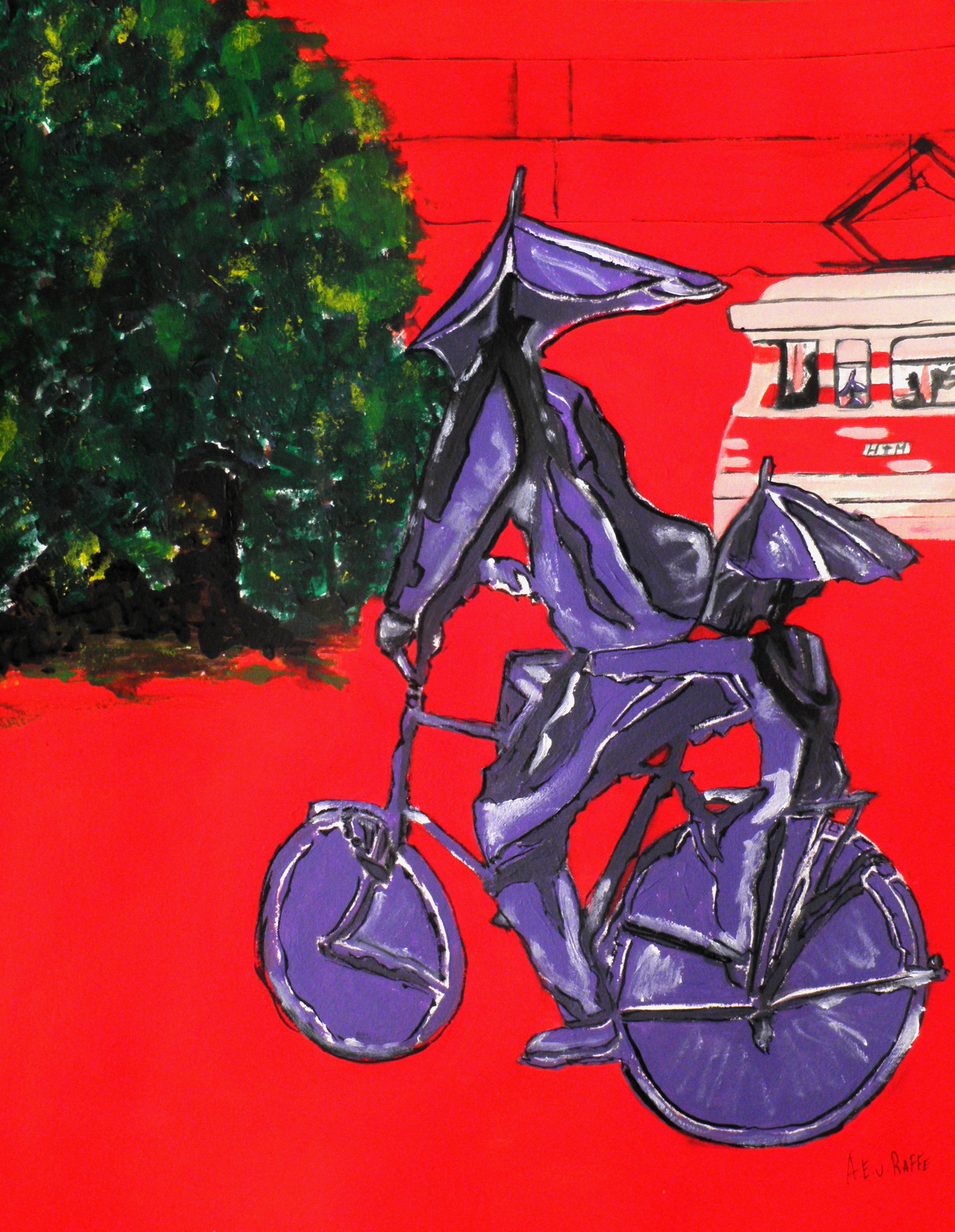 Rood Acryl Paars Red Fiets Boom Purple Tree Tram Bicycle Samen Together
