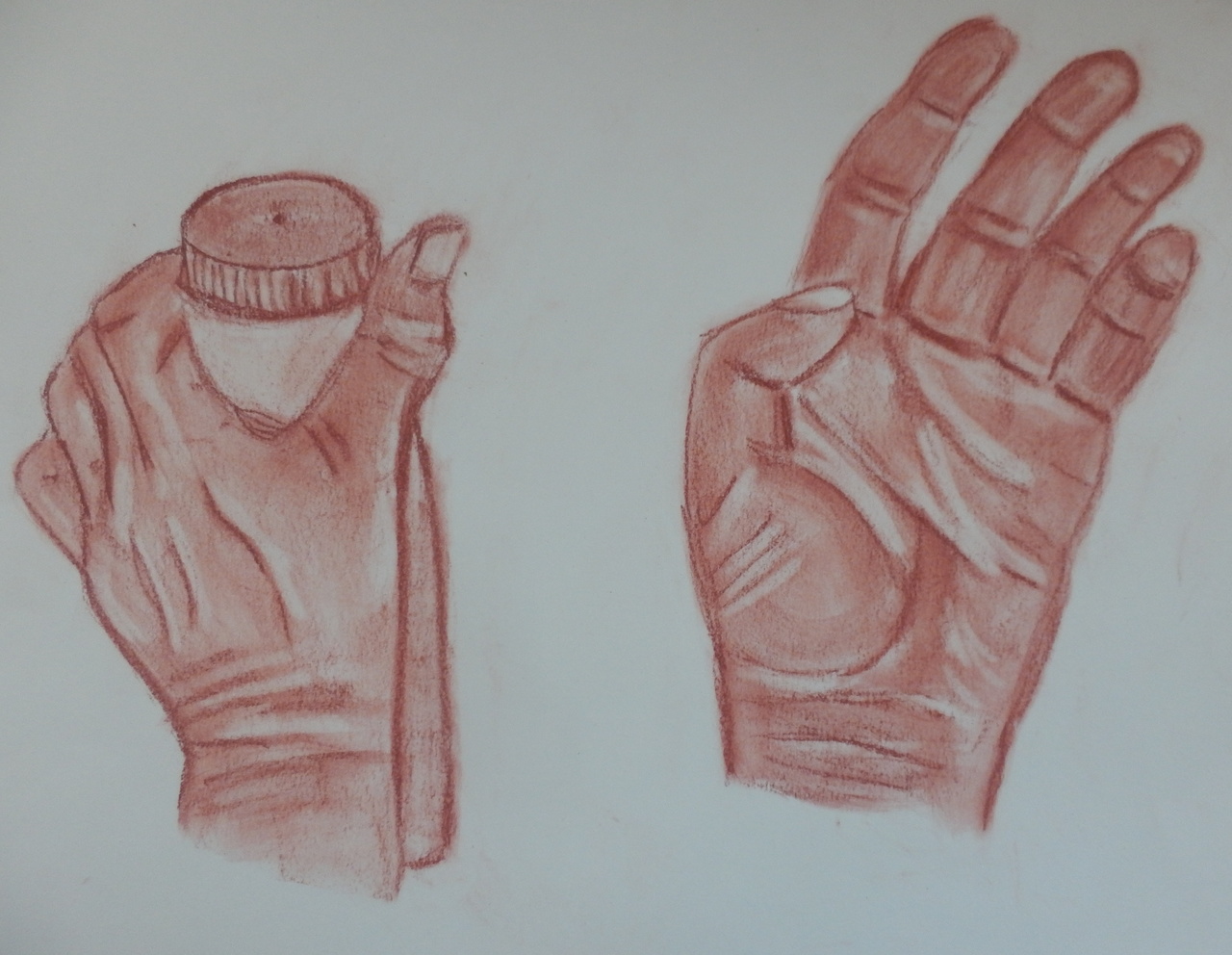 Handen met flesje in rood conte 1