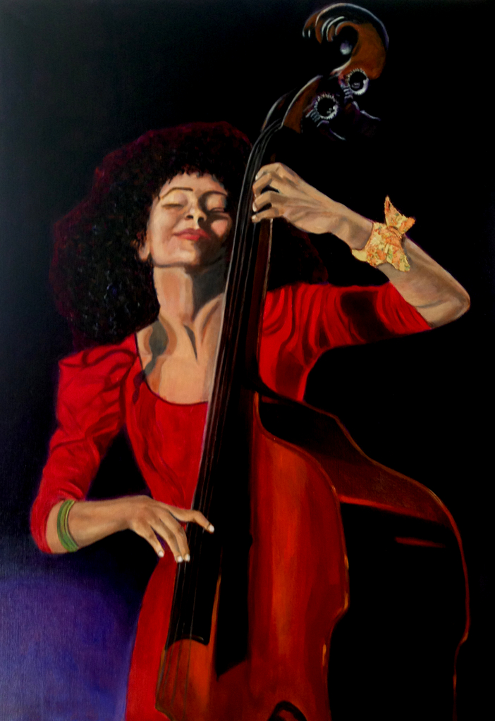 Esperanza Spalding, olieverf met bladgoud accent