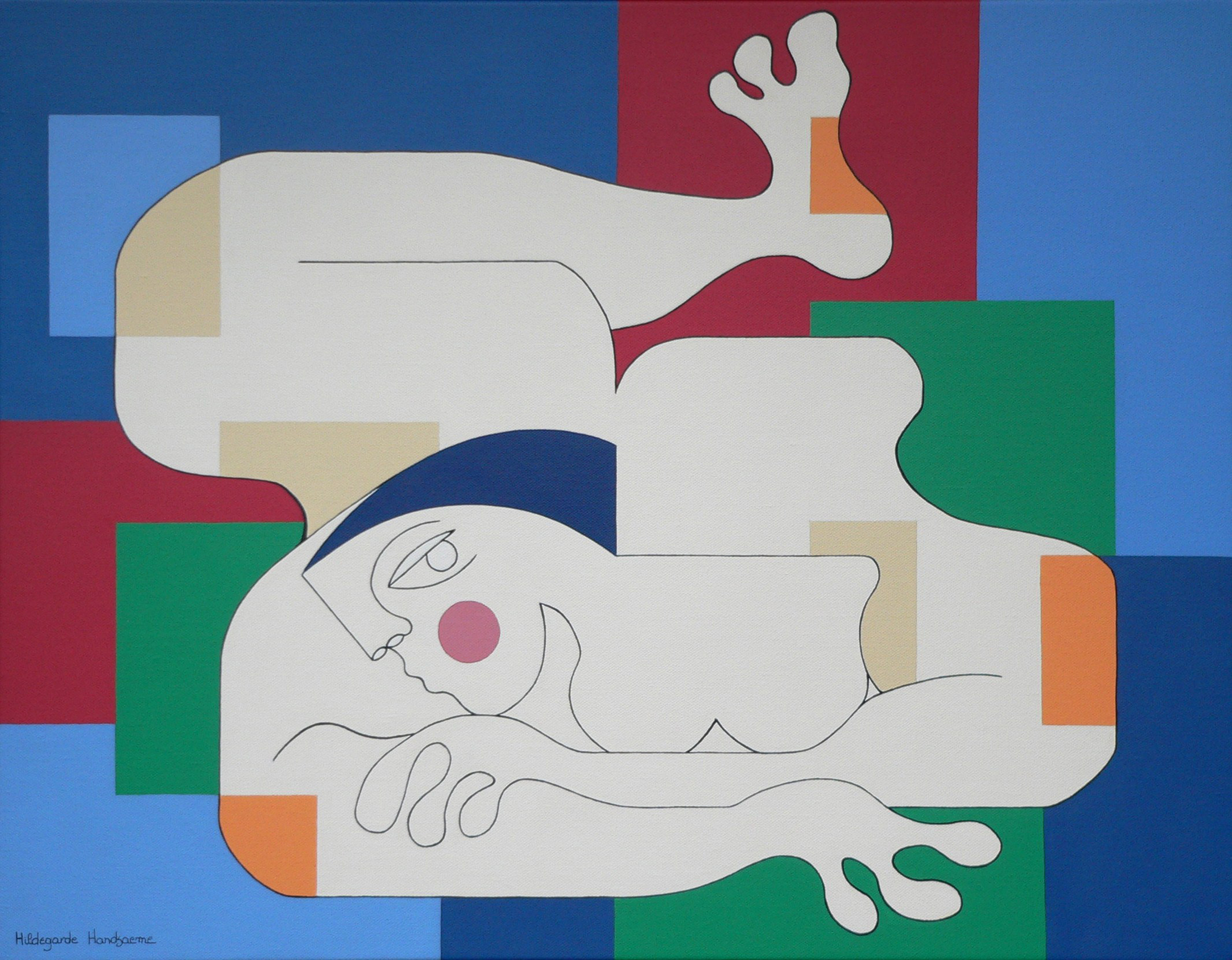 Modern Acryl Vrouw Painting Women Liggend Bleu Handsaeme Sensualité