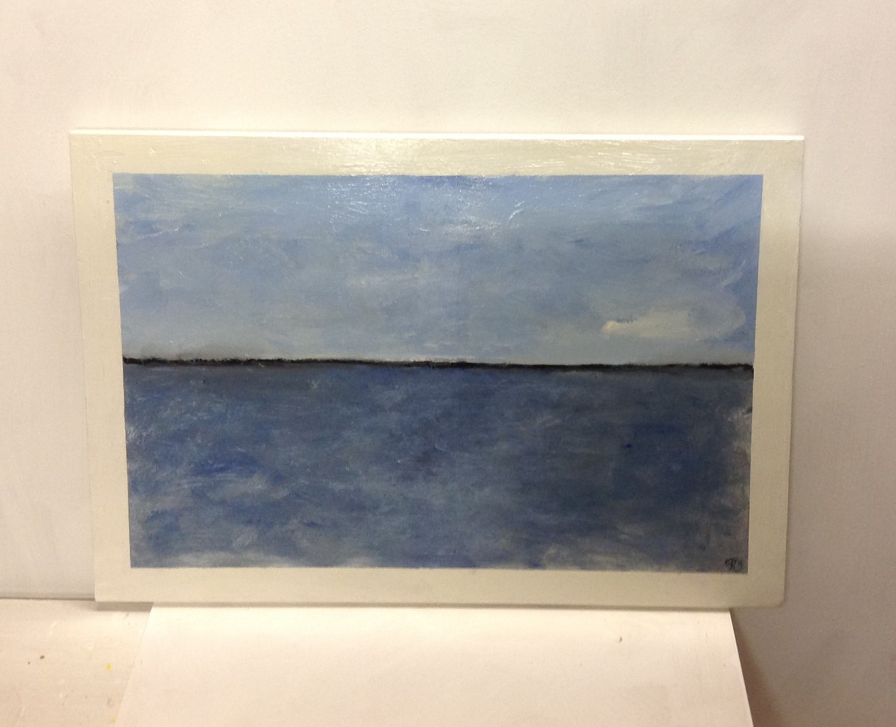 Zeeschildering op houtpaneel. Afgelakt. 50 x 70 x 2 cm.
