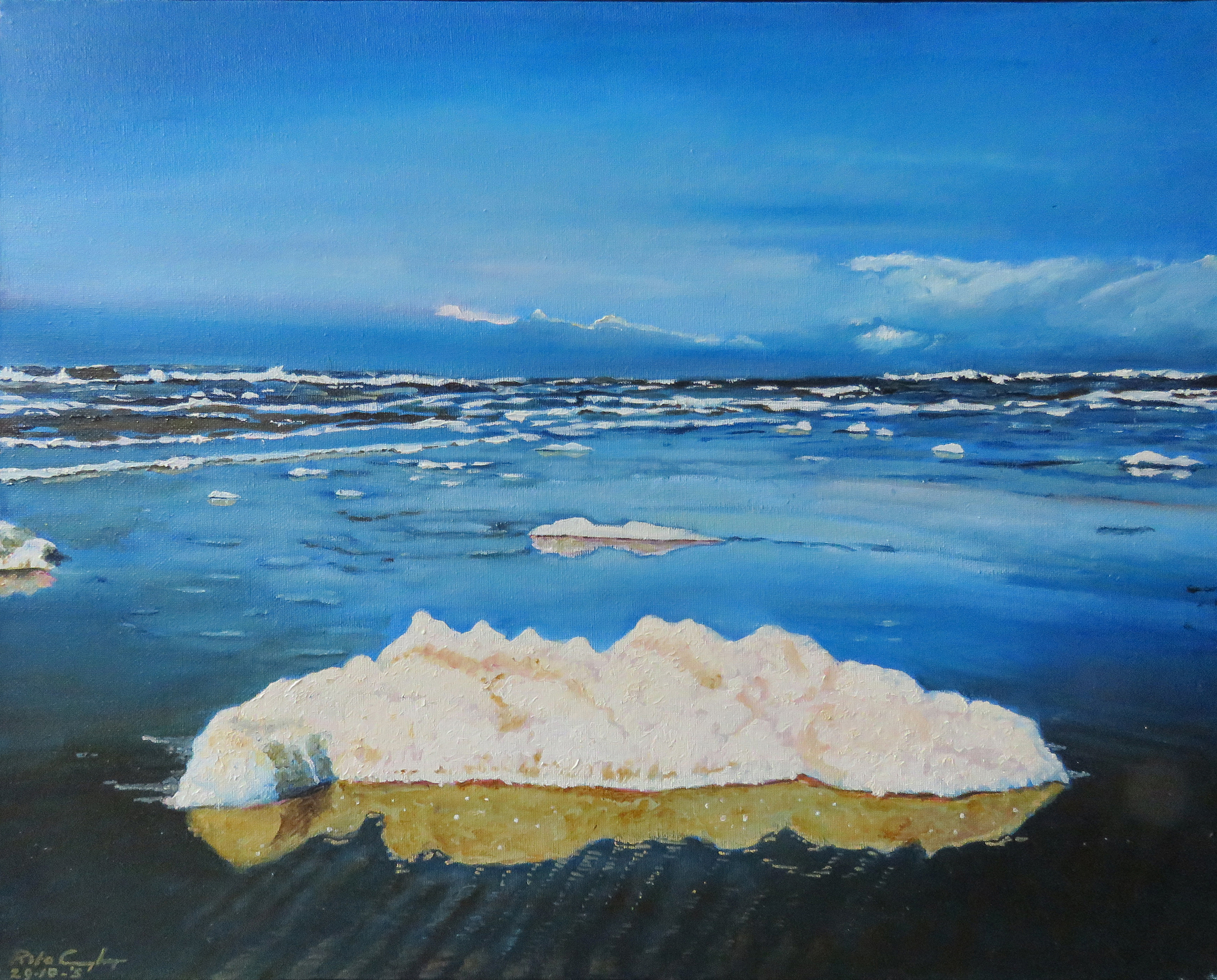 Schitterend schuim, tegen ijsblauwe omgeving. Koud, koud strandweer. We waren in Bergen aan zee en liepen van Bergen naar Egmond. Ingelijst