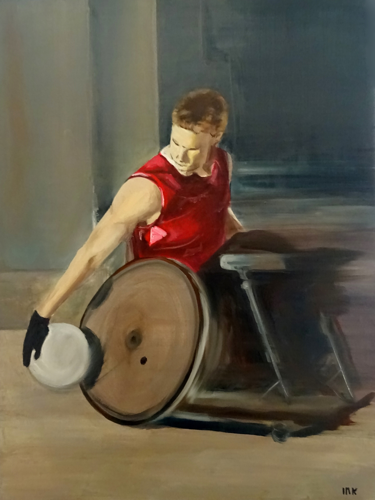 Man Realistisch Olieverf Bal Rolstoel Rugby