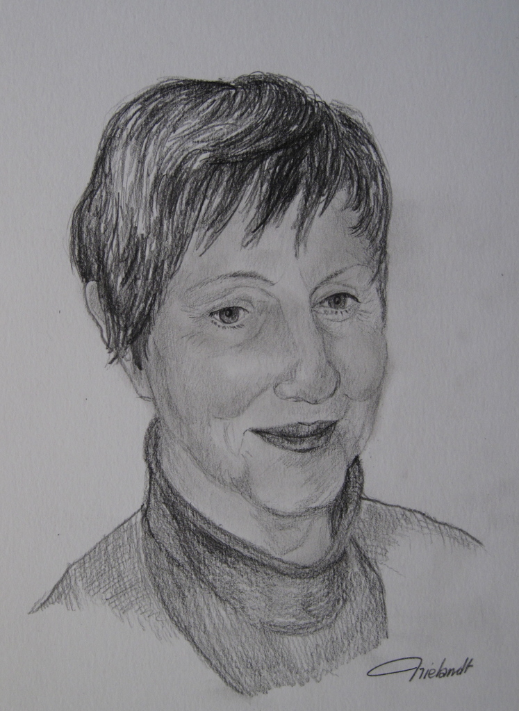 portret voor steunend lid Marita V., gemaakt op basis van een foto, met potlood op Steinbachpapier 200g/m2