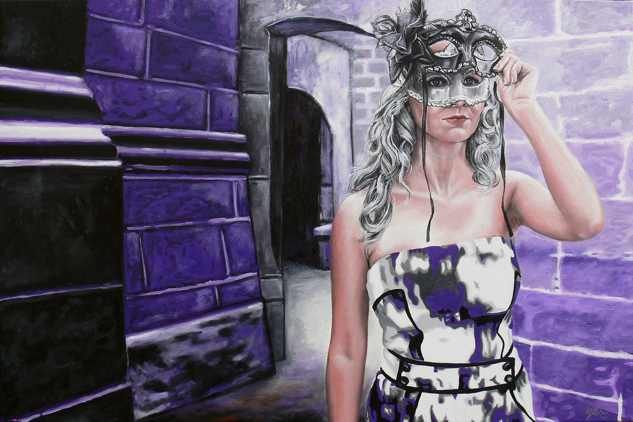 Modern figuratieve schilderijen. Symbolische vrouwenportretten in olieverf en acryl. En betoverende landschappen in collage en mixed media.