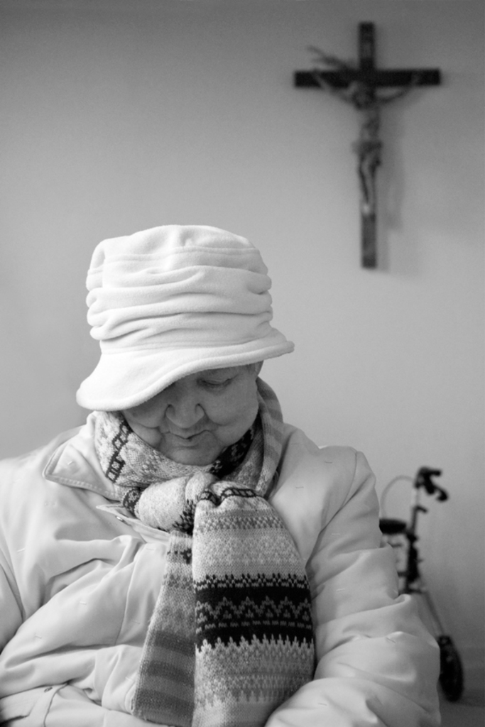 Kerk Oude Dame Geloof Zwartwit Katholiek Ouderdom Bidden Dementie Alzheimer Senior Heerlen Rollator Zorgcentrum Sevagram