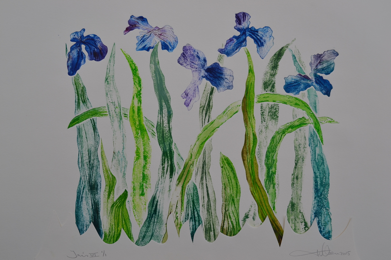 Iris VI - droge naald en aquatint - uitgezaagde zinkplaatjes - meerkleuren - oplage 1