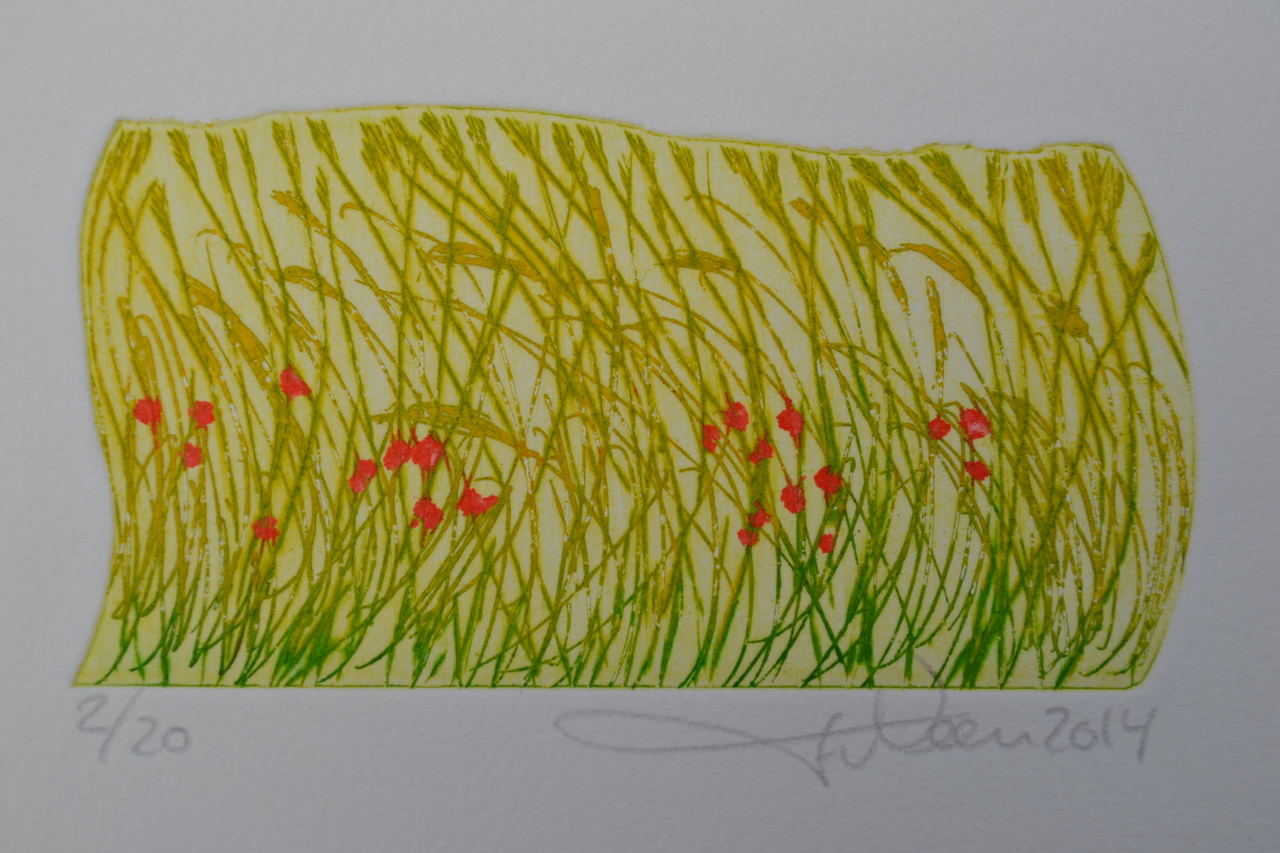 Champ de blé / Korenveld - droge naald en aquatint - uitgezaagd zinkplaatje - meerkleuren - oplage 20