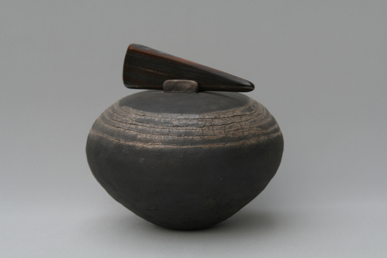 handgevormd raku met tijgerijzer steen