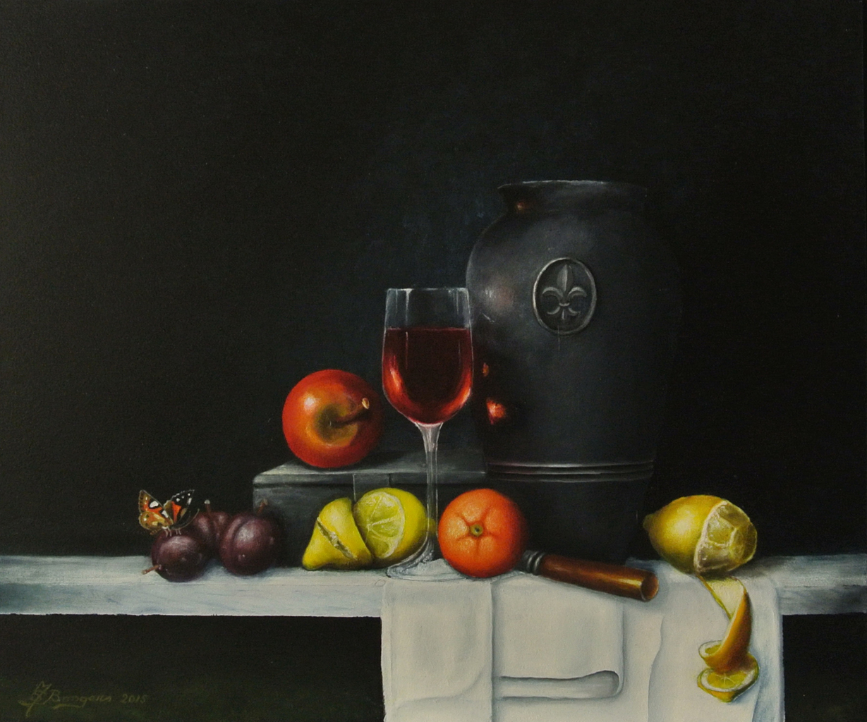 Mijn werk bestaat uit realistische stillevens met composities die een impressie weergeven uit het verleden, maar ook uit het huidige leven.