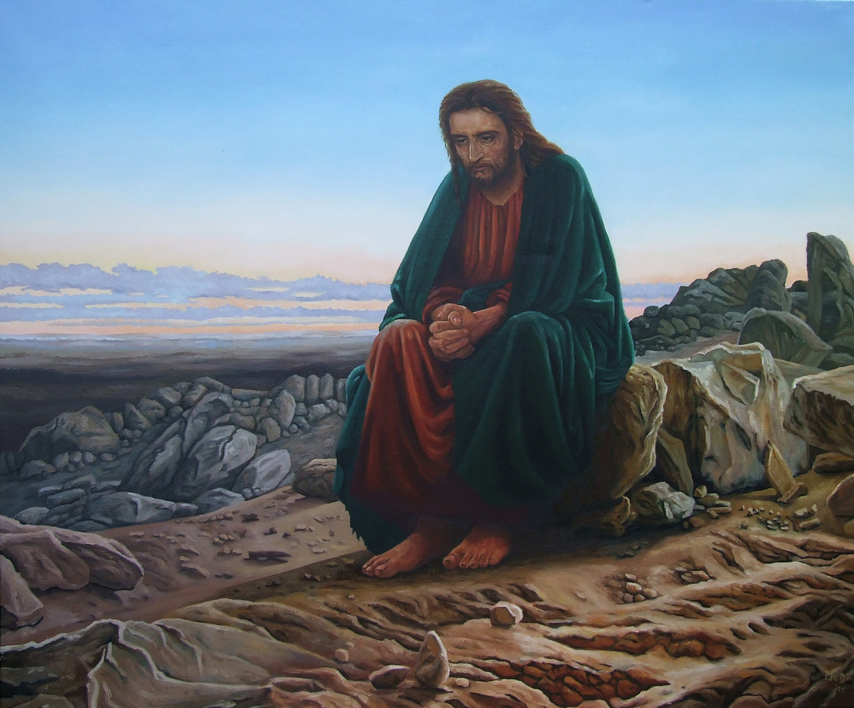 Realistisch Olieverf Woestijn Jezus Bijbelfiguur
