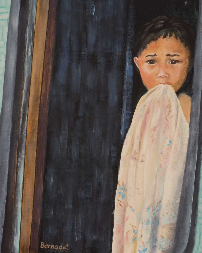 Blauw Kind Klein Olieverf Eenzaam Jongen Boy Blauwtinten Jongetje Lonely