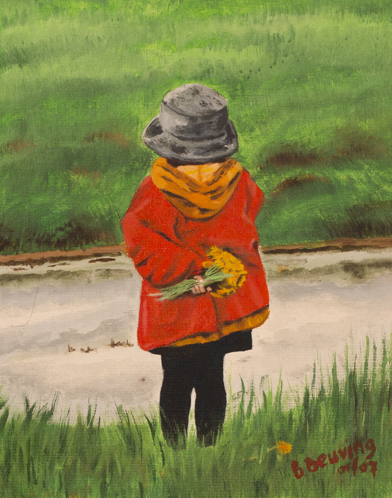 Meisje Rood Bloemen Jasje Olieverf