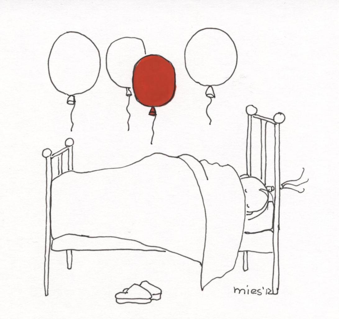 Hier slaapt Fien. Moe van de ballonnen