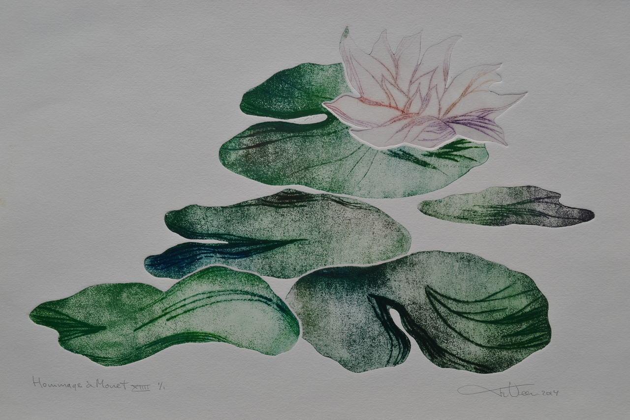 Hommage à Monet XIV - droge naald en aquatint - uitgezaagde zinkplaatjes - meerkleuren - oplage 1