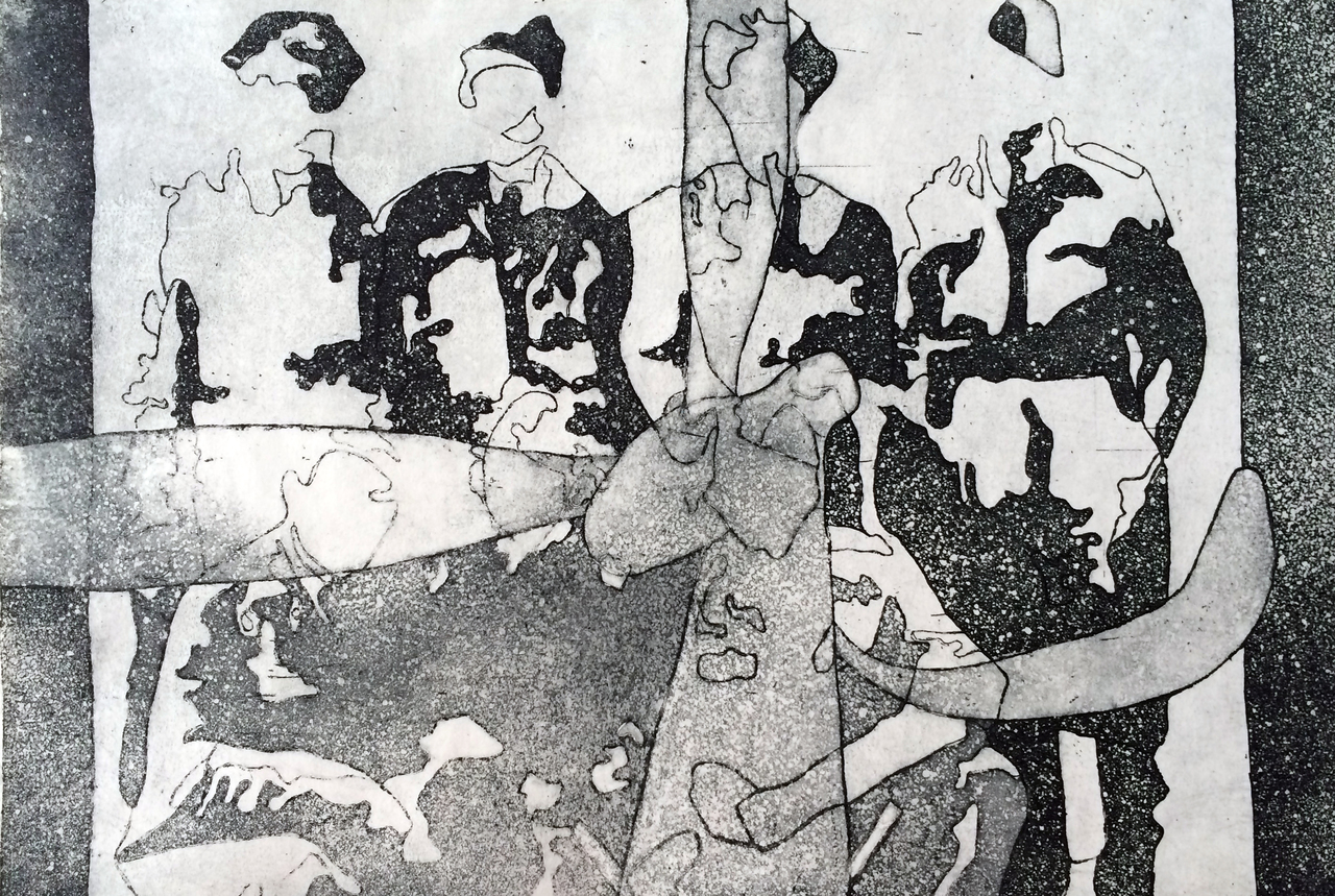 ets/aquatint gemaakt voor expositie Monumenten Spreken ter gelegenheid van Dodenherdenking en Bevrijdingsdag 2015