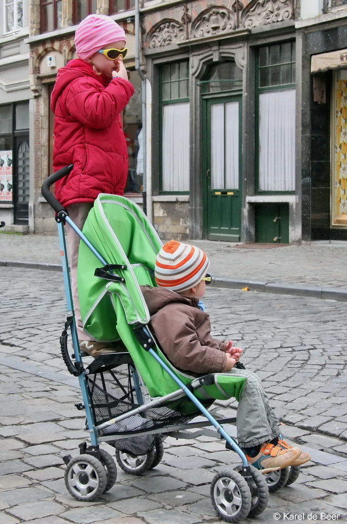 Zeg maar peuterplaats. Dit werd letterlijk opgevat toen de ouders even enkele stappen verwijderd waren van hun kroost in deze Gentse straat. Foto uit 2010 met een Canon 400D.