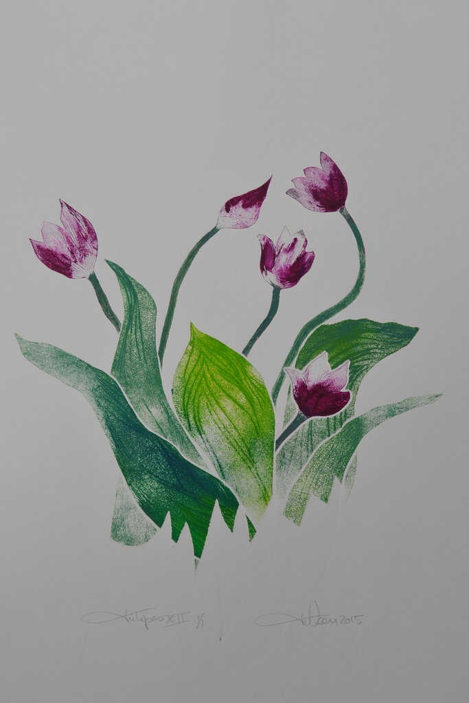Tulpen XII / Tulipes XII - droge naald en aquatint - uitgezaagde zinkplaatjes - meerkleuren - oplage 1